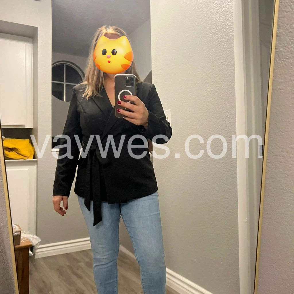 This blazer is the perfect addition to my workwear collection! The wrap design with the tie waist is so much more flattering than a regular boxy blazer. The fabric is lightweight but still has structure, so it doesn’t look sloppy. The notched lapel and subtle chest pocket add small details that make it look more expensive. It fits true to size, and the length hits at the perfect spot to elongate my legs. I feel so put-together every time I wear it.