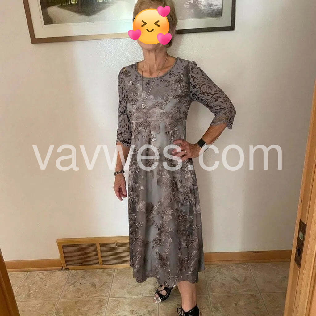 Brown Half Sleeve Round Neck Midi Dress