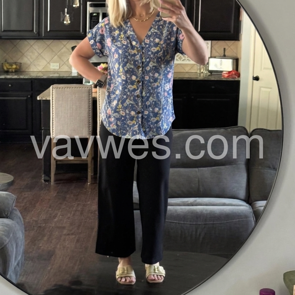Absolutely love this top! The floral pattern is so pretty and perfect for spring. The fit is relaxed but still very flattering, and it looks great paired with my favorite jeans. The material is lightweight and breathable. Highly recommend!