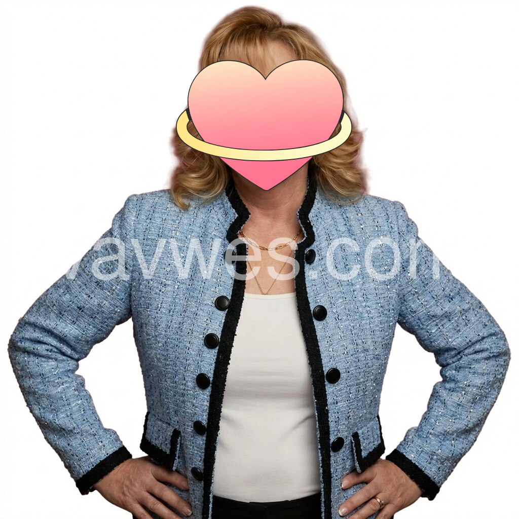 Blue Tweed Blazer With Black Trim And Double Button Design