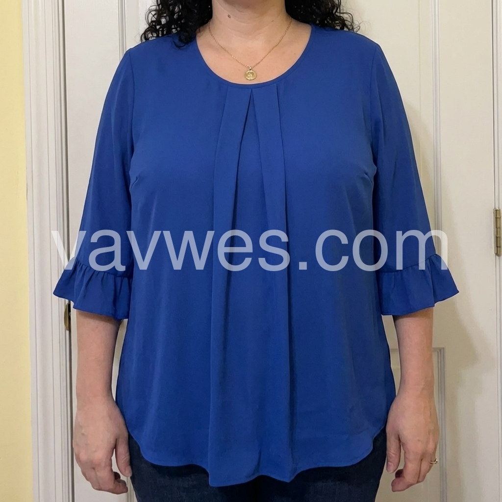 Elevate your everyday style with this gorgeous royal blue blouse. It features delicate front pleats and flirty ruffled cuffs, adding a touch of elegance to your look.