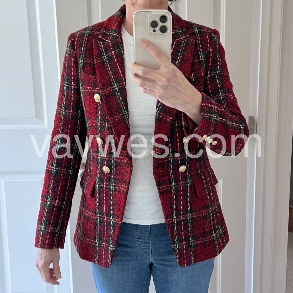 Upgrade your wardrobe with this Red Long Sleeve Check Blazer. This stylish blazer features a bold red color and a classic check print, perfect for making a statement. Crafted with long sleeves, it offers comfort and style all day long. Elevate your look with this versatile piece.